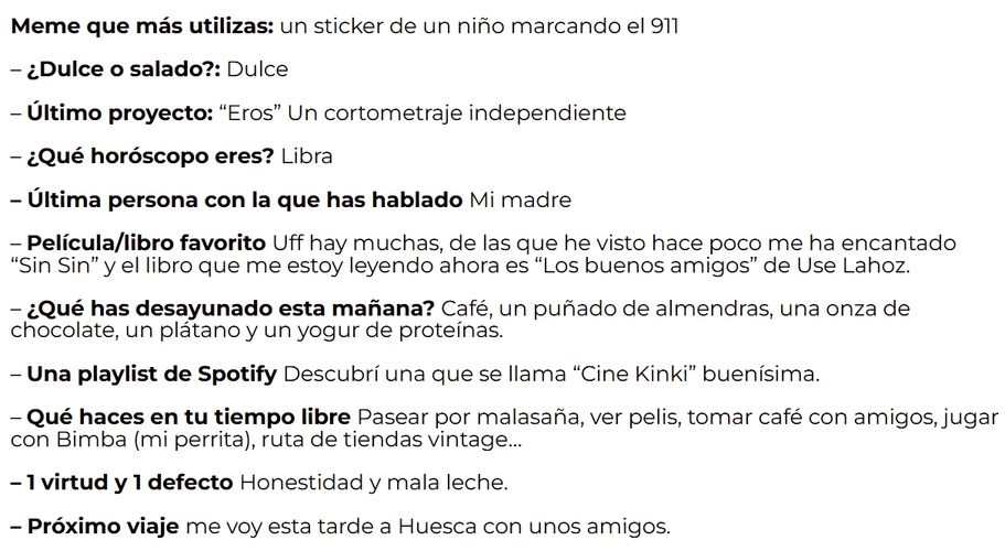 He has recently started his modeling career having worked for brands like ColdCulture. Beyond his artistic activity, he studied journalism at the Universidad Complutense de Madrid.
